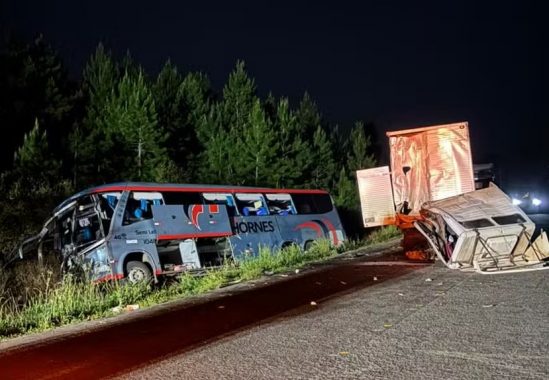 Acidente entre ônibus fretado e caminhão deixa duas mortes e 23 feridos no Paraná