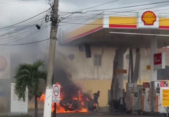 Carro pega fogo em posto de combustíveis no distrito de Barcelos, em São João da Barra