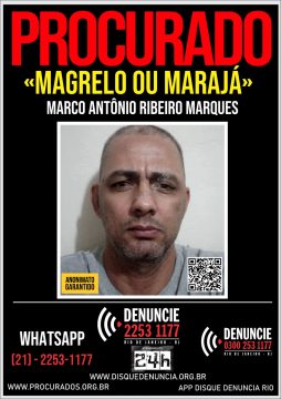 O Disque Denúncia divulgou, nessa terça-feira (30), um cartaz com informações sobre Marco Antônio Ribeiro Marques, de 53 anos, conhecido como “Magrelo” ou “Marajá”. Apontado como chefe do Terceiro Comando Puro (TCP) em Itaperuna, no Noroeste Fluminense, ele é o principal suspeito de ordenar a execução de pai e filha, mortos em represália a uma disputa entre facções rivais.