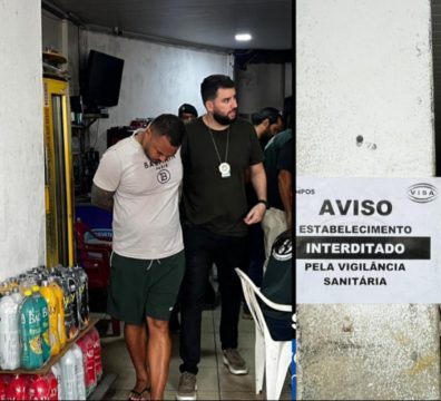 “”O estabelecimento está sendo interditado administrativamente pela vigilância sanitária e criminalmente também pela Polícia Civil, porque um crime estava acontecendo nesse local. Assim que eu cheguei aqui e perguntei para ele quem era o responsável pelo estabelecimento, quem era o proprietário desse estabelecimento, ele disse que o proprietário era ele. A partir do momento que foi desenrolando a fiscalização e tudo mais, ele disse que ele seria o gerente. Sendo gerente ou sendo proprietário, ele é responsável por todos os produtos que ele expõe à venda. Preso, sim, em flagrante delito. Inicialmente, por crime contra as relações de consumo, ou seja, produtos fora da validade que estavam sendo expostos à venda”, complementou.