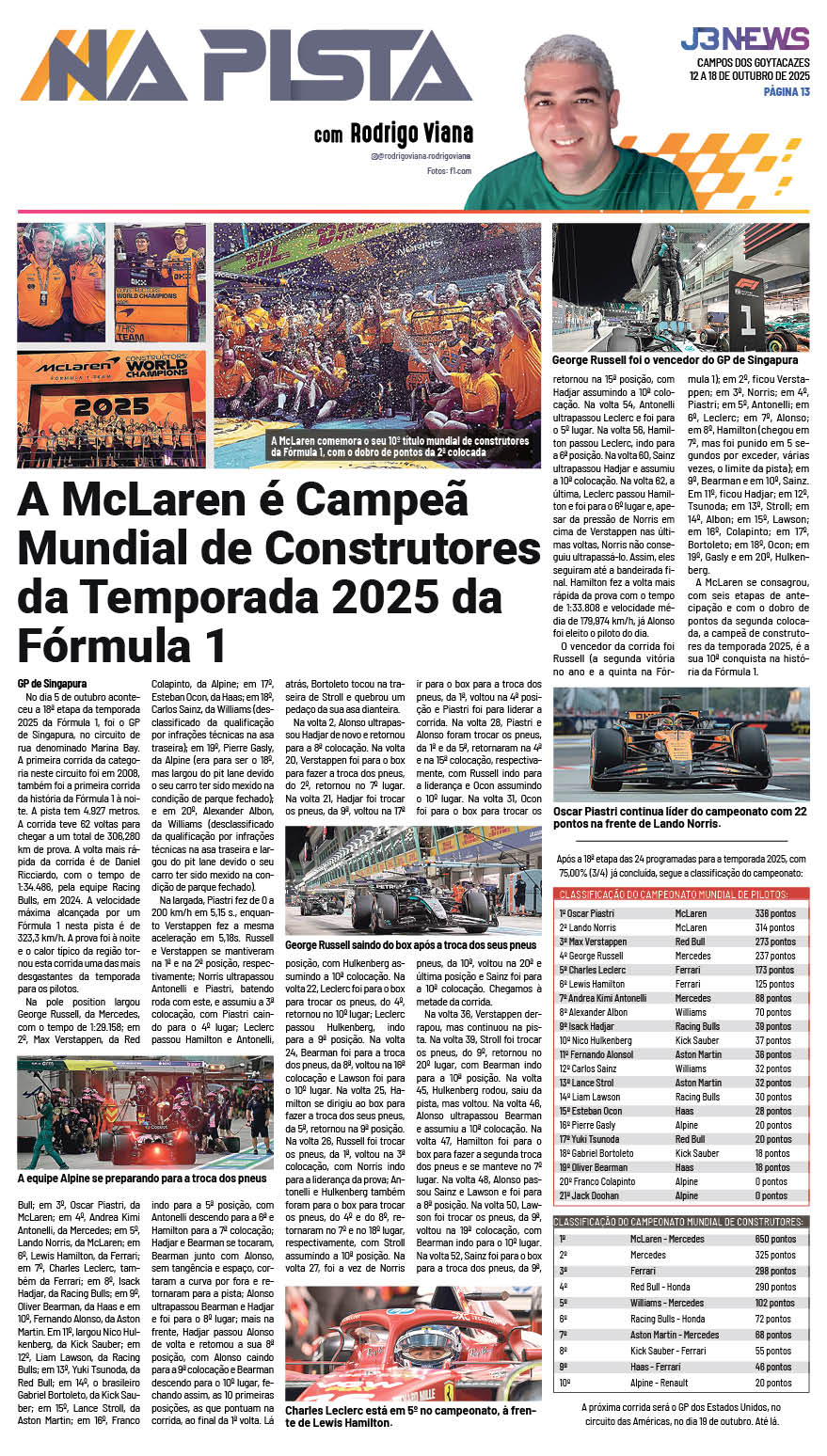 A McLaren é campeã mundial de construtores da Temporada 2025 da Fórmula 1