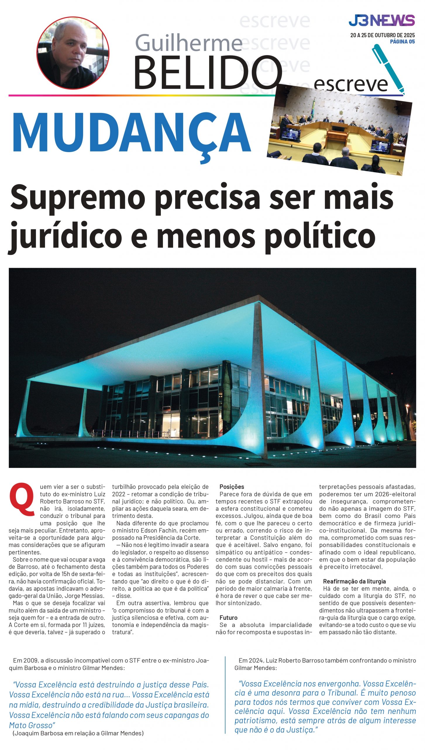O que se deseja focalizar vai muito além da saída de um ministro e entrada de outro – sejam ambos quem forem. A Corte em si, formada por 11 juízes, é que deveria, talvez – já superado o turbilhão provocado pela eleição de 2022 – retomar a condição de tribunal jurídico; e não político. Ou, ampliar as ações daquela seara, em detrimento desta.