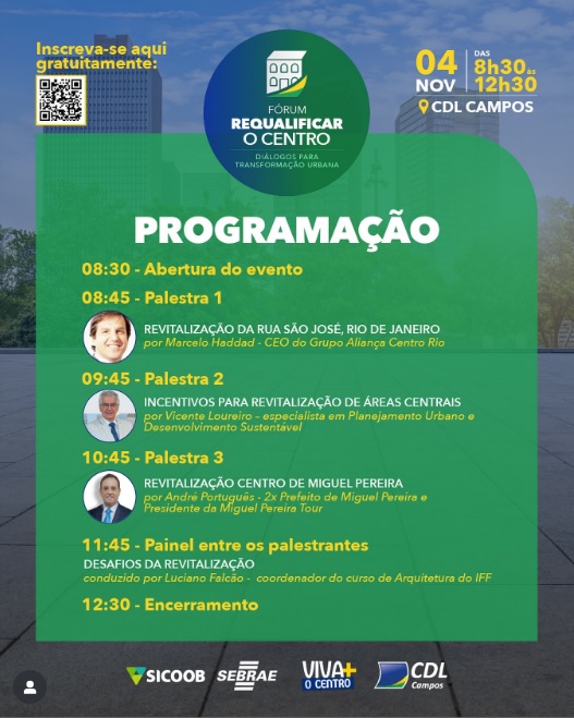 De acordo com o presidente da CDL Campos, Fábio Paes, o encontro é um espaço de diálogo entre autoridades, especialistas, empresários e representantes da sociedade civil sobre o futuro do coração comercial e histórico da cidade.
