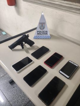 Celulares furtados e arma falsa. Foto: Divulgação / PM