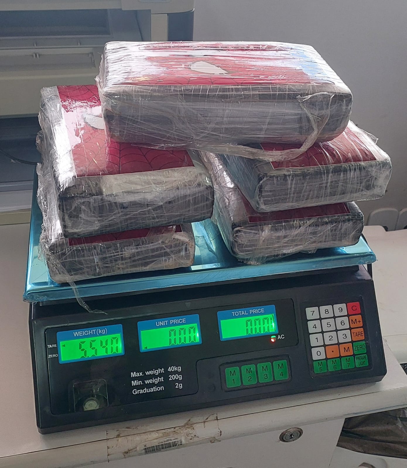 Ao fazer a vistoria no interior do veículo, foram encontrados 5 pacores de cocaína, totalizando cerca de 5,5 quilos. Todo o material e o veículo foram encaminhados para a 143ª Delegacia de Polícia, em Itaperuna, onde o caso foi registrado.