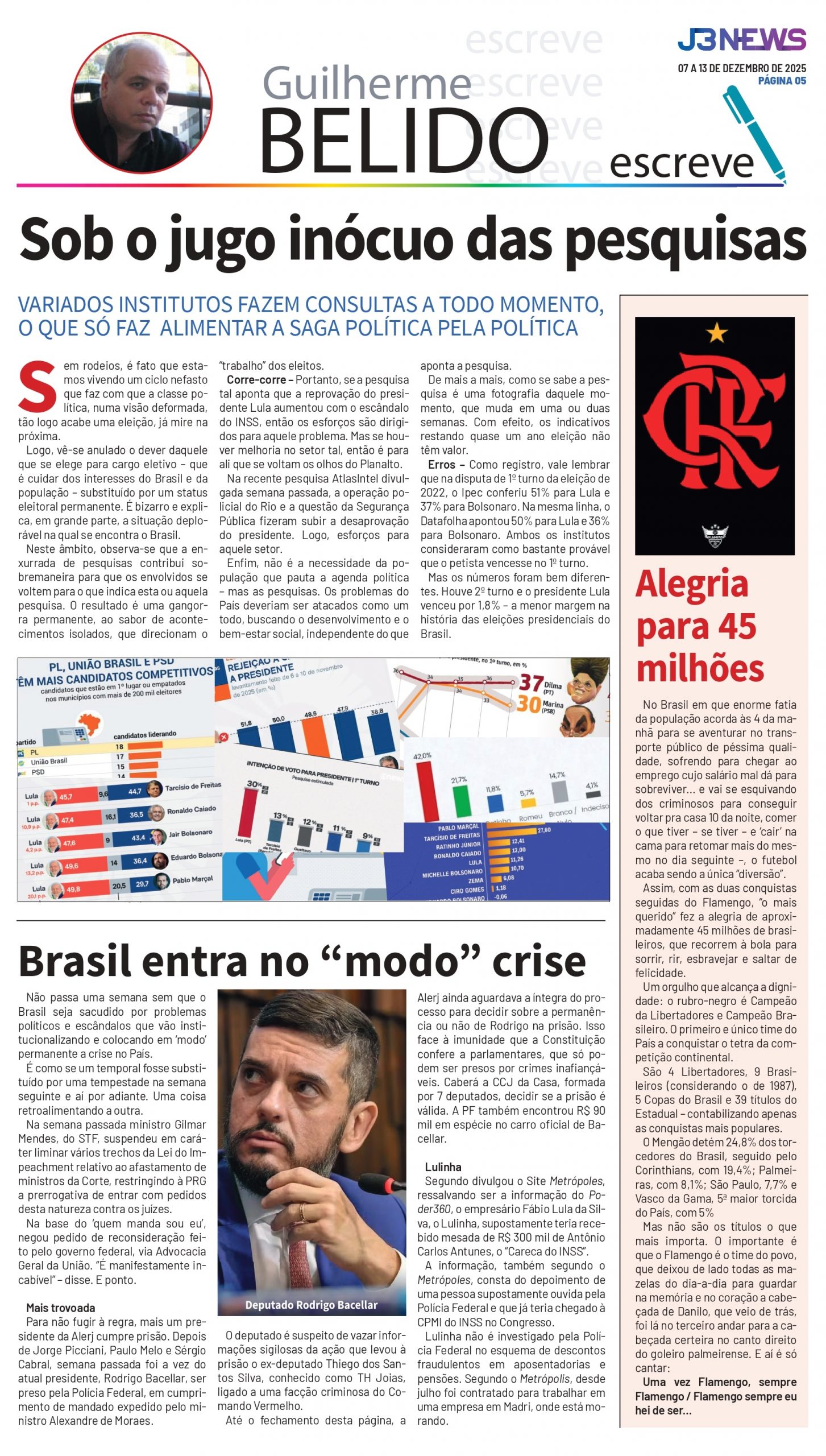 Corre-corre – Portanto, se a pesquisa tal aponta que a reprovação do presidente Lula aumentou com o escândalo do INSS, então os esforços são dirigidos para aquele problema. Mas se houver melhoria no setor tal, então é para ali que se voltam os olhos do Planalto.