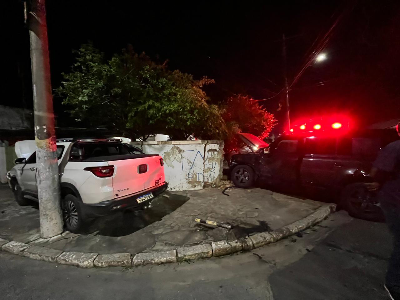 Um acidente envolvendo dois veículos foi registrado na esquina das ruas Prefeito Edgard Machado e Cora de Alvarenga, no Parque Leopoldina, em Campos, na noite desta segunda-feira (22). No cruzamento, um dos carros colidiu na lateral do outro. Os veículos tentaram o desvio em direção ao muro de uma residência no local, derrubando parte da estrutura.