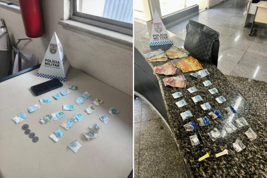 No primeiro caso, as guarnições entraram na via quando um homem fugiu ao perceber a aproximação policial. Ele chegou a ser alcançado momentaneamente, mas conseguiu escapar após uma aglomeração formada por mulheres e crianças ao redor da equipe, o que dificultou a abordagem e identificação, segundo a PM. O suspeito abandonou uma bolsa feminina contendo R$ 603 em espécie e quantidade de entorpecentes.