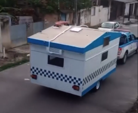 Um trailer da Polícia Militar (PM) foi encaminhado na tarde desta quinta-feira (8) ao bairro do Parque Prazeres, situado no subdistrito de Guarus, em Campos. Em um vídeo que circula pelas redes sociais, moradores registram o momento em que uma viatura do 8º BPM leva o trailer até um ponto do bairro.