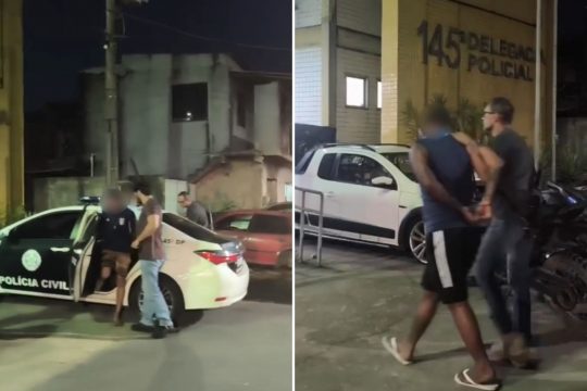 Durante as buscas, as equipes se deslocaram até a Avenida Santo Amaro, no Telê Santana, onde localizaram e abordaram dois suspeitos, identificados pelas iniciais G.N.C., de 21 anos, e C.S. de S., de 22 anos. Ambos foram conduzidos à 145ª DP, onde foi lavrado o auto de prisão em flagrante. Eles foram autuados pelos crimes de homicídio consumado e tentativa de homicídio, com base no artigo 121 do Código Penal e suas qualificadoras.