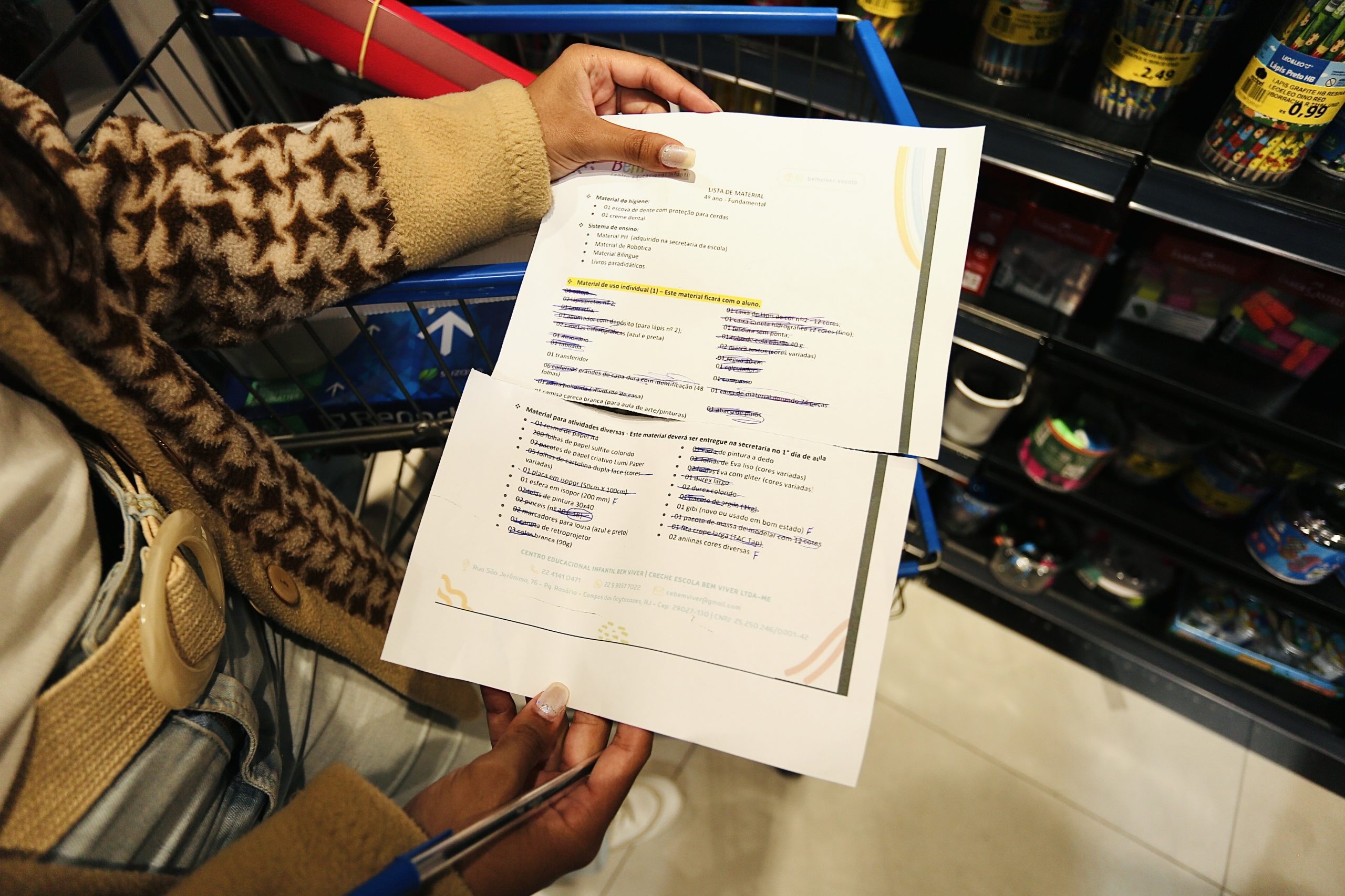 O técnico de serviços Antônio Fonseca relata que na hora de decidir onde comprar os materiais da filha Maria Clara, dois fatores são decisivos: “Costumamos ir geralmente em duas lojas no máximo. Onde tem o melhor preço e atendimento, a gente já compra”, comenta. Aline Azevedo é mãe do Enzo, que vai para o 4° ano do ensino fundamental neste ano. Ela também começou nos últimos dias a visitar estabelecimentos para dar início às compras. “Já fui a três lojas. Pesquisei bastante e estou começando a comprar, porque ele volta a estudar antes do Carnaval”, diz.
