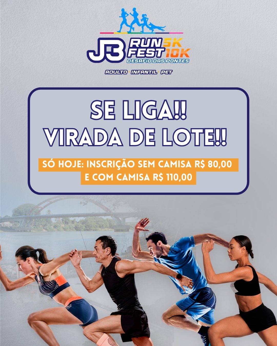 Este sábado (31) é o último dia do segundo lote do J3 Run Fest : Desafio das Pontes. A corrida está marcada para o dia 22 de março, em Campos dos Goytacazes, e para participar, as inscrições podem ser feitas pelo site Ticket Sports, até o dia 13 de fevereiro (clique aqui). A inscrição com camisa oficial J3 Run Fest sai a R$ 110, e sem a camisa, R$ 80.