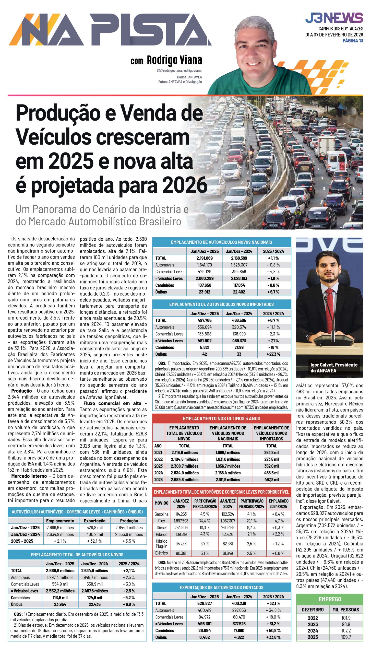 Produção e venda de veículos cresceram em 2025 e nova alta é projetada para 2026