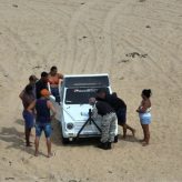 Durante a gravação, um casal que estava dentro do carro percebe a situação e intervém, gritando com o suspeito. Diante da reação, o homem solta a bicicleta e foge em direção a uma das ruas próximas.