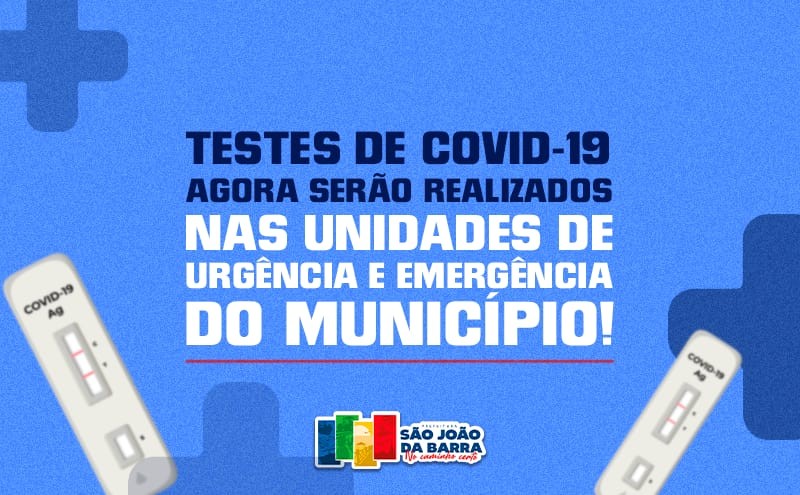 A Prefeitura de São João da Barra, por meio da Secretaria Municipal de Saúde, realizou mudanças no esquema de testagem para Covid-19 no município. A partir de agora, os testes passam a ser realizados exclusivamente nas unidades de urgência e emergência da rede municipal de saúde.