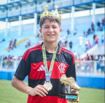 Com apenas 12 anos, @lucas.beda12 foi o artilheiro e grande destaque da competição disputada na categoria Sub-14, com 9 gols marcados em sete jogos, além de desfilar técnica em campo, trajando a tradicional camisa 10 do Flamengo. Capitão do time, ele recebeu o troféu de campeão das mãos do prefeito de Macaé, Welberth Rezende.