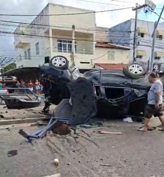 Um grave acidente foi registrado na tarde deste domingo (5) na Avenida 28 de Março, na altura do bairro Turf Club, em Campos dos Goytacazes. Com o impacto da colisão, um dos motoristas foi arremessado para fora do veículo, que ainda chegou a capotar após atingir a proteção da ciclovia. A causa do acidente está sendo apurada.