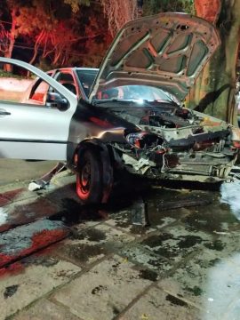 Uma mulher de 43 anos, não identificada, ficou ferida após colidir de carro contra uma árvore na noite desta quinta-feira (16), no cruzamento da Avenida 28 de Março com Tenente Coronel Cardoso, no Parque Tamandaré, em Campos dos Goytacazes.
