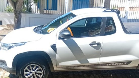Na fuga, os bandidos levaram um veículo Fiat Strada branco, de cabine simples, carregado com frutas e verduras, além de um aparelho celular da marca sansung A06.