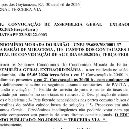 Edital de convocação de Assembleia Geral Extraordinária do Condomínio Morada do Barão, em Campos