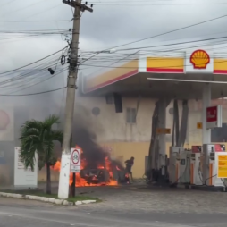Carro pega fogo em posto de combustíveis no distrito de Barcelos, em São João da Barra