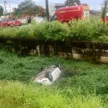 Carro capota e cai no Canal do Saco, no Parque Leopoldina