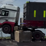 Carreta atinge bloco de concreto na Estrada dos Ceramistas, em Campos
