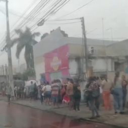 Fila longa marca troca do Cartão Goitacá no Jardim Carioca, em Guarus
