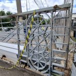 O veículo deixava o local após realizar a entrega de alimentos quando atingiu uma coluna de sustentação da entrada principal