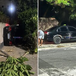 Motorista perde controle, derruba muro e carro tomba no Parque Esplanada, em Campos