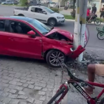 Carro colide contra poste após bater em outro veículo na Av. Nilo Peçanha, em Campos