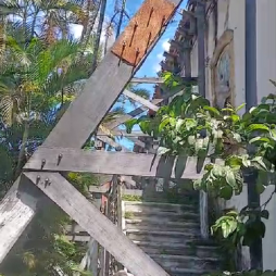 Prédio histórico se mantém com escoramento que já se desprende da estrutura