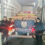 Polícia Militar recuperou toda a mercadoria avaliada em R$100 mil, após rastrear o caminhão usado no furto