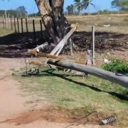 Imagens foram compartilhadas nas redes sociais; motivo da queda dos postes está sendo apurado