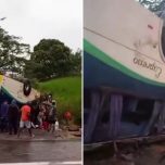 Ônibus de viagem capota na BR-356, em Itaperuna