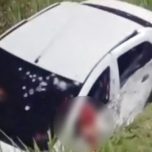 Veículo foi encontrado no canteiro central da via, no sentido Santa Cruz, com marcas de fuzil.
