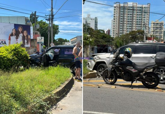 Carro colide contra poste após bater em outro veículo na Av. Nilo Peçanha, em Campos